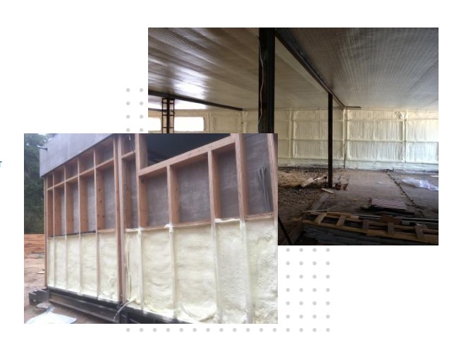 - При напылении пенополиуретана с закрытой ячейкой одновременно с утеплением достигается пароизоляция, гидроизоляция и ветрозащита.